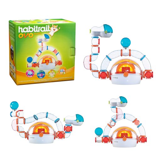 The Habitrail® OVO Studio Habitat allows you to design the living environment for your hamster - you can create up to 4 different design possibilities. The OVO Studio has more room to let your hamster roam to the different hideaways. Your hamster can choose from many locations to snooze, hide, play and jet up for a quick snack in his cozy Mini Maze.The Mini Maze comes complete with the interactive chewable maze, providing hours of foraging fun for your hamster. The Mini Maze has two openings which provide easy access to your hamster. No Mess and Easy to Clean? High molded walls to keep your hamster's bedding inside his home, and not all over your table or floor.Fresh Food for Longer!? The food dish is now raised high above the floor to help stop waste and bedding (Yuk!) from getting in your hamster's food.Easy Access to Water!? The design of our clever new water bottle makes it easy for you to fill and for your hamster to drink.If You Build It - He Will Burrow!? Building your hamster's dream home is no problem with our new patented Habitrail® OVO Lock Connectors. They easily twist and firmly lock the tunnels, tubes and nesting areas together so you can build any creation you can imagine.Includes: ? Cage? Mini Maze with Interactive Chewable Maze? Water Bottle? 2 Tees? 3 Elbows ? 2 Cubes? 4 Curves? 1 U-Turn? 7 Windows? 15 Lock Connectors